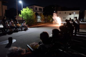 先日101歳のお誕生日を迎えた利用者様も一緒に手持ち花火を楽しんだのですが、ある職員が「100歳の花火」と言っていたのを聞いて思わず写真を!