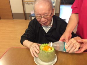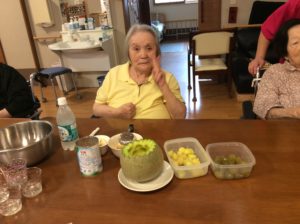 1丁目ユニットで旬の果物を使った涼しげなおやつを作りました・・・