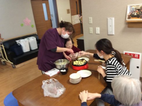 この日はたこ焼き器を使って東京ケーキを焼きました。うまく真ん丸に出来上がりました。