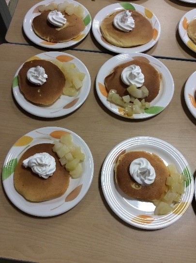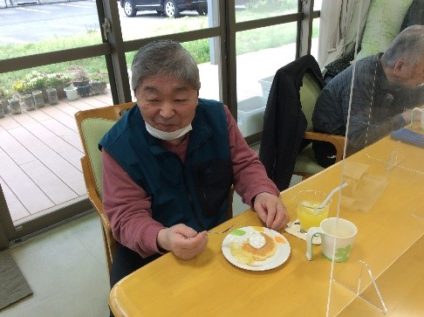 感染対策の為、利用者様に作って頂く事はできませんでしたが、皆様の見える所で職員がホットケーキを焼きました。