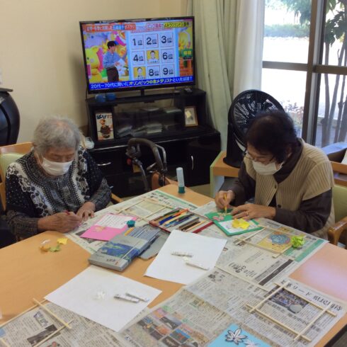台紙の色や飾りの種類、配置など悩みながら、それぞれの作品をお互いに褒め合いながら楽しい時間を過ごせたようでした。