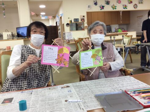 デイサービスでは11月のカレンダーを作成し、持ち帰っていただきました。