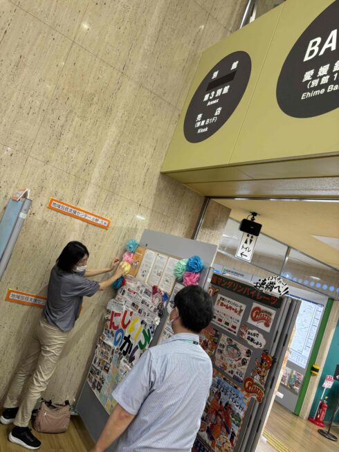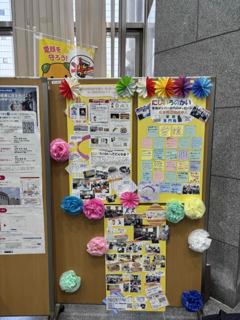 愛媛県庁別館、松山市役所本館ロビーで行っている啓発展示に若年性認知症支援コーディネーター事業やにじいろのかい(本人・家族の交流会)の紹介をいただくコーナーを設けていただきました。