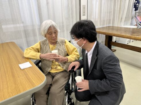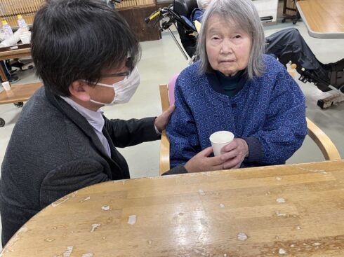 元旦に入居されているご利用者の皆様に新年のあいさつ行い、お屠蘇をふるまわせていただきました。お屠蘇が飲めない方は甘酒で乾杯。