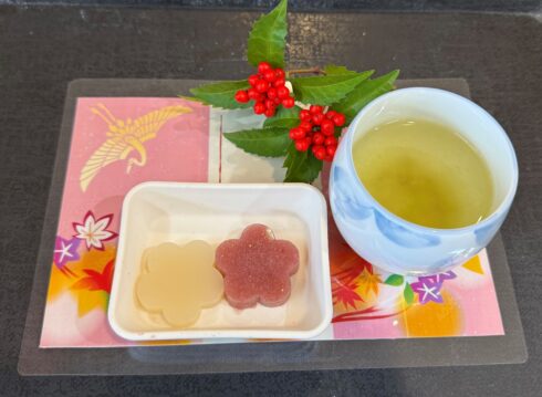 1月1日 おやつには紅白羊羹と甘酒、昆布茶でした。