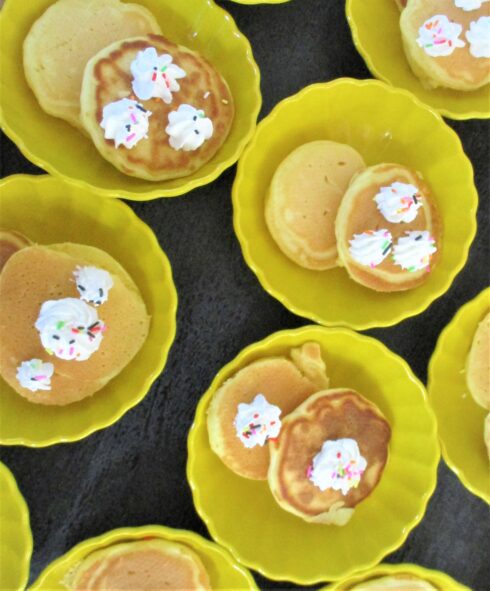 可愛くデコレーションされたホットケーキは甘くておいしかったと好評でした。